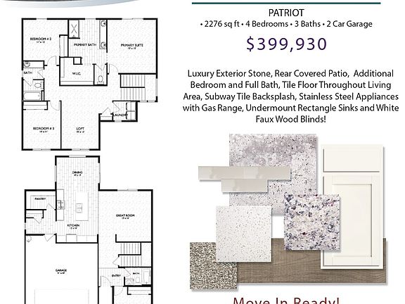 Luxury Exterior Stone, Rear Covered Patio, Additional Bedroom and Full Bath, Tub in Primary Bath, Tile Floor Throughout Living Area, Subway Tile Backsplash, Stainless Steel Appliances with Gas Range, Undermount Rectangle Sinks and White Faux Wood Blinds!