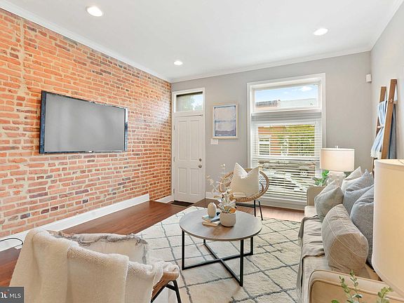 CHAP TAX CREDIT RENOVATION W/ PARKING & ROOF TOP DECK - this 14' wide renovation  in convenient Brewer's Hill location features an open floor plan w/ hardwood floors throughout, island kitchen w/ granite counters, custom cabinetry, ss appliances, crown molding and exposed brick.  Upper level offers large owner suite w/ luxurious bath, hallway laundry & second full bath, rear bedroom w/ walk in closet leading to two tier roof top deck.  There is a fully finished lower level with two additional bedrooms and walk out basement.  Approximately 4 years remaining on chap tax credit - current taxes only $3253/year with credit!