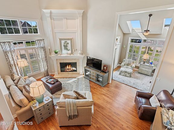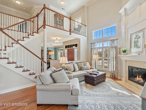This John Henry home is a WOW on every level!! The best lot in Prairie Ridge. Gorgeous hardwood floors, elaborate custom-trim & crown molding, transom windows, Plantation shutters throughout! First Floor master that is OVER THE TOP! Master bathroom remodeled in 2020! Second full bath also remodeled in 2020! Live like a ranch, but w/extra bedrooms on the second floor when the family visits! Has the look and feel of a single family home, without any of the work! Cathedral ceilings in living room, trim-work on fireplace is two-stories tall! Sunny den has skylights & access to the deck. Kitchen update in 2015 includes all SS appliances, glass tile backsplash and gorgeous granite countertops. New oven 2015, microwave in 2019. Large laundry room on first floor, two-car garage. Carpeted stairway leads down to French door which opens to huge unfinished English basement. Exterior maintenance, lawn and landscaping care, driveway maintenance, snow removal. Brick paver driveway & sidewalk. Enjoy sunsets from your spacious deck overlooking the open land! Close to shopping!