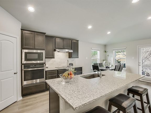 Newly built in 2021 this home sits on 1/3 acre on a quiet street with lots of trees! This property has a private park like feel with beautifully trimmed shade trees and privacy fence across the back. The rear porch is a charming place to hang out with your morning coffee and watch the local deer walk by. Upgraded flooring and appliances are just a few of the wonderful features of this home! The owners suite looks out into the private yard and has a bright and open ensuite with walk-in shower, walk-in closet and linen closet. The bonus room could be a 4th bedroom/home office/media room or studio and has high ceilings and tons of natural light. Lago Vista has an excellent school district, lake travis waterfront parks, marina, fitness center, fishing well, shopping, restaurants, clubhouse, community pool and so much more! Lago Vista is lake life at its best!