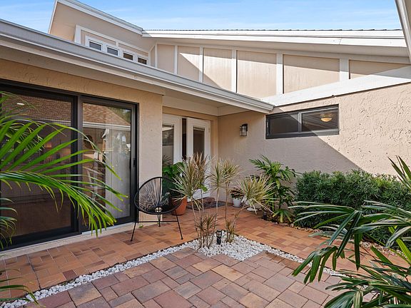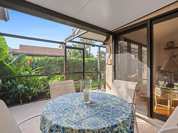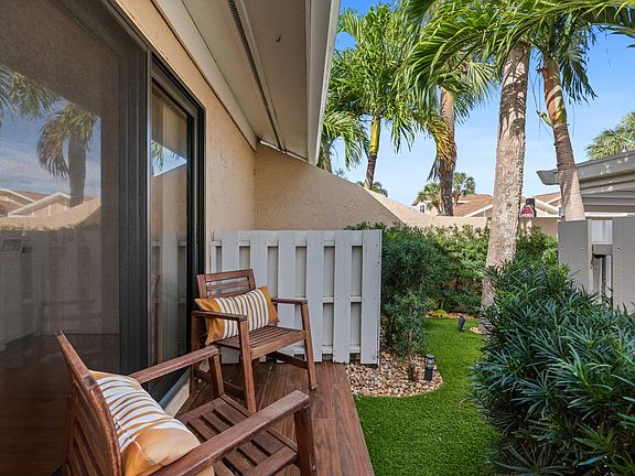 Welcome to Jonathan's Landing of Jupiter, where luxury and comfort await you. This one story unit is the larger unit and situated on a corner lot for great privacy and filled with an abundance of natural light, high vaulted ceilings with no one above you!. Quiet and completely private back yard. Second patio off kitchen for more outdoor living. Home has a fully remodeled kitchen,, impact glass, recess lighting, and fully remodeled bathrooms, showcasing modern and stylish finishes. More like a home than a villa. Two private parking spots right out of front door, one covered! Plenty of storage with Outdoor storage closets, an attic with a pull-down staircase, and a designated golf cart outdoor enclosed space/storage to ensure that all your belongings will f Both bedrooms feature spacious walk-in closets, providing plenty of room for your wardrobe and accessories.
