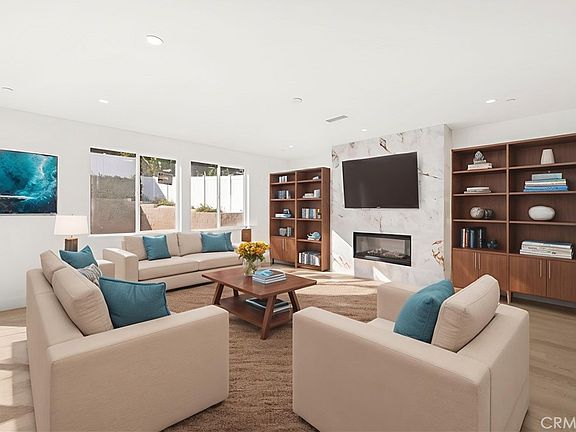 Garden spaceLarge fenced backyardGourmet kitchenLarge center islandSleek white cabinetryClean modern finishesSpacious primary suite