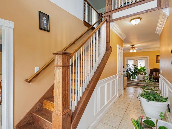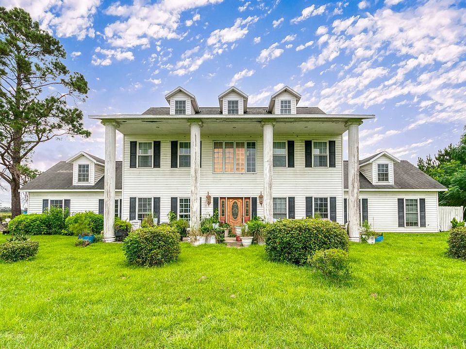Sitting upon a full acre this west facing 15-year young 5 BR, 3BA home, features timeless neoclassic architecture and is reminiscent of a Greek revival with the white fluted doric style columns. The welcoming 2 story foyer with centered staircase leads up to 4 spacious bedrooms and a full bathroom, all with hardwood flooring. The owner's suite is conveniently located on the first level and placed on the south side of the home. The main level features a dining room, large eat in kitchen, living room, and a bonus room providing plenty of space for gathering. Opportunity is knocking!