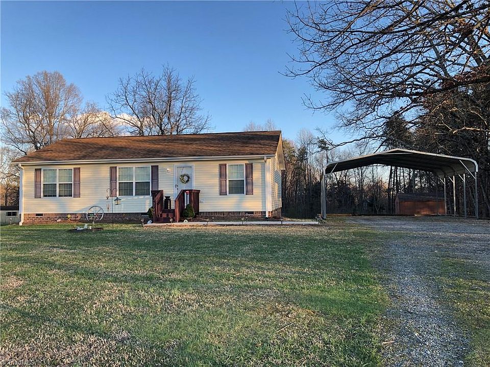 INVESTORS!! Set your appointment to see this darling 2 BR, 2 BA home on 1.21 acres in rural Summerfield. Desirable LOCATION, NEAR I-73, for a starter home or investment property. Great layout, features a split-bedroom floor plan, with a spacious primary bedroom, complete with full bath and walk-in closet. The living room and kitchen are open and roomy. Nice dining area within the kitchen, and all kitchen appliances convey with the home. Convenient mud/laundry room off the kitchen would be a perfect spot for a 'drop-zone' when coming in from the yard. The home and grounds are immaculate, and the setting is a beautiful, mostly-grassy 1.21 acres, with a margin of woods in the back for privacy. Great space for gardening or pasture! Metal carport and (approx.) 8x10 storage building convey with the home. The home was serviced by a shared well, located at a neighboring home. See 'agent only' remarks or contact the listing agent for further details.
