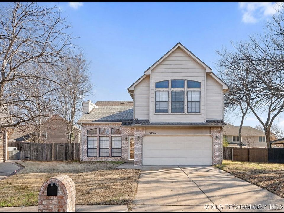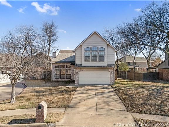 Welcome to this charming, light and bright beauty. Perfectly situated on a peaceful cul-de-sac in Broken Arrow's Glade Crossing neighborhood. Tall ceilings, granite countertops, and large windows create a grand and inviting atmosphere. The living room features vaulted ceilings and a fireplace, with both a formal dining room and a second dining area open to the kitchen. The first floor includes a half bath, while the second floor houses all three bedrooms and two full baths. The spacious primary suite offers large windows, a double sink vanity, a jetted bathtub, and a separate shower. Less than 2 miles to highway access, dining, and shopping. The neighborhood features a park as well! Priced to sell—schedule your private showing today! Do not disturb tenants.