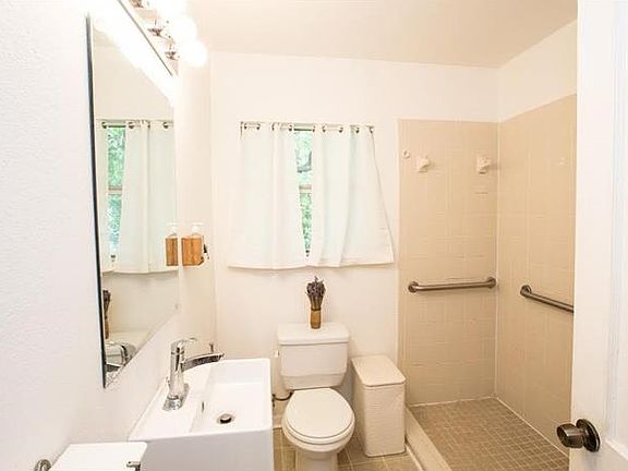 GORGEOUS OPEN AND AIRY - Open floorplan, gourmet kitchen w/ modern appliances - perfect for entertaining, living room is set up for projector screening with ceiling outlet and projector painted walls; handicap-accessible shower, master has tons of closet space; spacious back yard for playing, evening BBQs, and gardening! Walking distance to Mueller, Ingredients Local Grocer, Haymaker, local restaurants, shops and parks. Owner would consider allowing tenant to sublet on a short-term basis.