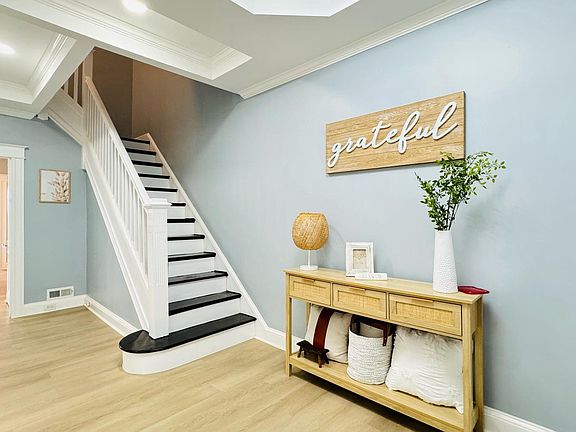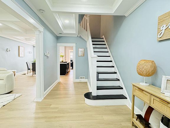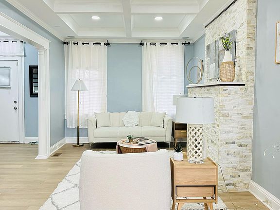 Beautifully transformed 4BR/2BA Townhome in a quiet neighborhood. Walk up to the covered front porch and open the door into your new home. Step into a beautifully remodeled home featuring an open concept floor plan boasting tons of natural light, custom coffered ceilings, luxury flooring, and see-through railings. The spacious living room is open to the stunning kitchen and dining room. The kitchen features two tone cabinets, stainless steel appliances, sleek quartz countertops with a tiled backsplash, and a deep sink, pendant lighting, and breakfast seating for three or more. On the second floor is 4 bedrooms and a full bathroom with Jacuzzi bathtub and a walk-out to the big back yard. From the main floor step outside to a spacious newly constructed deck that overlooks the green space below offering tons of possibilities., This home is move-in ready with so much to offer new homeowners and is located within close proximity to shopping, restaurants, and commuter routes