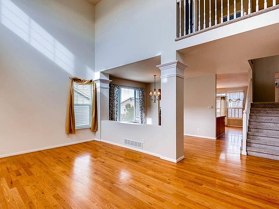 Perfect Move In Ready Highlands Ranch Home! Rare 4 Bedroom Up with Main Floor Office/Study/Den! Finished Walk-Out Basement with a Trampoline in the Backyard! This is truly the Floor Plan and Yard every family wants with Mountain Views! Vaulted Ceilings upon entry Streaming with Natural Light into the Dining Room with pass through to the Kitchen + Eating Space. Family Room with Fireplace + Nicely designed Entertainment Buildout and Plantation Shutters. Hardwood Floors throughout the main level! 4 Spacious Bedrooms upstairs including the Master Bedroom Ensuite with Walk-In Closet! Oversized Laundry Room on the Upper Level! Finished Walkout Basement with Wet bar and Media Room + Surround Sound Speaker Wiring! New Roof, New Exterior and Interior Paint + New Carpet!! Move right in and Customize Your Design! This is a Fabulous Value for the Finished square feet in Highlands Ranch with Superb Lot Elevation and Mountain Views!