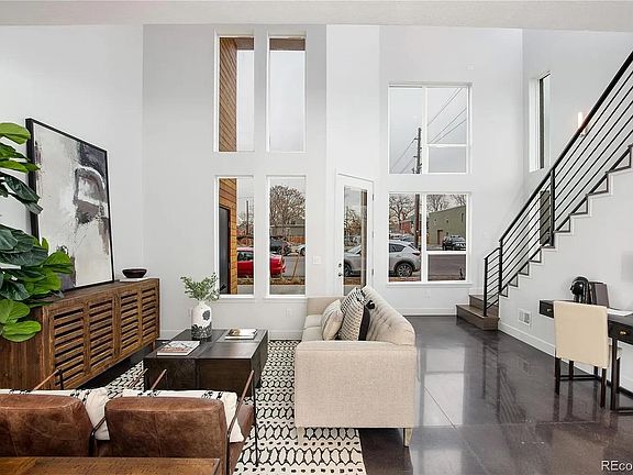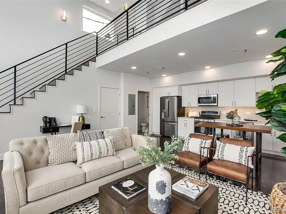Prime location! Rare, beautiful townhome in RiNo. Deal directly with the owner for personalized and prompt attention. This contemporary 3-level rowhome, with 2 bedrooms and 3 baths, features an open floorplan with a 2nd level loft space (and wet bar!) opening up to expansive 20-foot ceilings with a sculptural 8-foot ceiling fan and treated concrete floors. Kitchen has quartz stone slab countertops, tons of storage, and stainless appliances with a gas stove. Primary suite has a walk-in closet and a massive spa-like bath with rain shower and dual vanities. A guest room, full bath (with a huge soaker tub) and a new Samsung washer & dryer are also on 3rd floor. Rare for RiNo, the unit also comes with a 1-car detached garage space in a secured, gated area to make parking stress-free. It's walking distance to the 38th & Blake RTD stop to easily get to Union Station or the Airport, near the Mission Ballroom (10min walk), and quick access to I-70 and I-25 - and just a steps away from all the bars, restaurants, breweries, and cafes that RiNo has to offer.