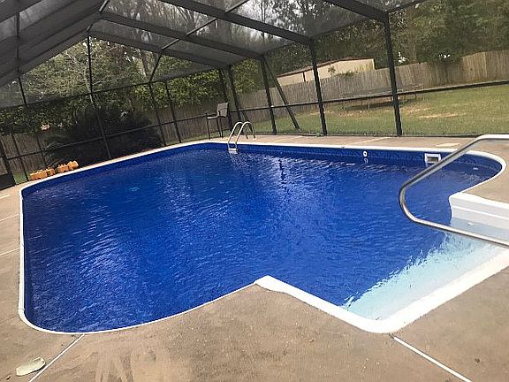 Huge house with heated pool, large covered deck, game room, basketball court, 4 bedrooms downstairs, 1 bedroom up w/ balcony sitting area. Big yard w/ wooden privacy fence. Brick wood burning fireplace. Breakfast bar in the kitchen & large eating area. Good functional kitchen. Great for the large family. For more info., call toll free 1 (888) 793-6601.