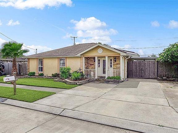Indulge in the beauty of this charming & unique residence surrounded by lush gardens in the heart of Chalmette. It has everything that you have been looking for and is being offered at an irresistible price! This gem boasts 3 generously sized bedrooms and 2.5 bathrooms, the half bath is by the poolside connected to the outdoor shed. 1701 Living s/f & 2290 Total s/f. With a sprawling double lot, rear yard access from Marietta, and a total depth of 153 feet, this property offers ample space for you to call your own. The backyard is a paradise in itself, featuring an inviting inground pool with hot-tub spa, and a 28x10 covered patio, perfect for entertaining. You will love the elegance of the Trey ceilings in the living room, breakfast area, and Primary Bedroom, accompanied by recessed lighting throughout. The cozy kitchen with custom cabinetry and granite countertops is equipped with all appliances and a pantry. Unwind in the Primary bathroom's Jacuzzi tub or enjoy the massive sunroom with a separate kitchen, currently being used as a charming man cave. Double driveway! No Carpet! This remarkable property has everything you need and more, and we urge you to take a tour of it before it's gone! The seller is willing to leave the riding lawn mower with an acceptable offer. Home can be sold furnished or unfurnished, call for more details today!