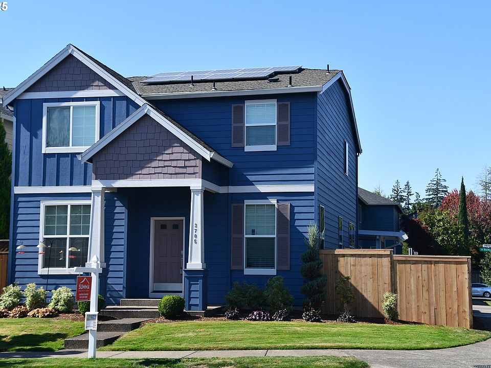 Welcome to this beautifully maintained 4-bedroom, 2.5-bathroom two-story home, ideally situated on a desirable corner lot in a quiet, walkable neighborhood near parks and scenic pathways. Complete with energy-efficient, cash saving solar panels that will be fully paid off by the seller at closing. Built in 2006, this spacious home offers both comfort and functionality with a modern layout designed for today’s lifestyle.Step inside to discover fresh interior paint and an inviting floor plan that begins with a generous living room anchored by a cozy gas fireplace—perfect for relaxing evenings or entertaining guests. The large kitchen features ample counter space, a convenient eat-in bar, and plenty of cabinetry, making it a great hub for gatherings and everyday meals. Just off the main living area, you'll find a versatile office space that can easily serve as a 5th bedroom, ideal for guests or remote work needs.Upstairs, you’ll be impressed by the oversized bedrooms and the spacious loft-style family room that offers additional flexibility as a playroom, media center, or home gym. The primary suite includes a private bathroom and a walk-in closet, offering a comfortable retreat at the end of the day.The fully fenced backyard is easy to maintain and perfect for outdoor dining or relaxing with a cup of coffee - new fence recently installed - shown in first photo. Additional features include a low HOA and a two-car garage pre-wired for an EV charger (charger not included)—a rare find for eco-conscious buyers.Don’t miss your opportunity to own this turn-key home in a welcoming community with convenient access to schools, shops, parks, and more! 12 month home warranty provided with an acceptable offer. [Home Energy Score = 10. HES Report at https://rpt.greenbuildingregistry.com/hes/OR10237149]