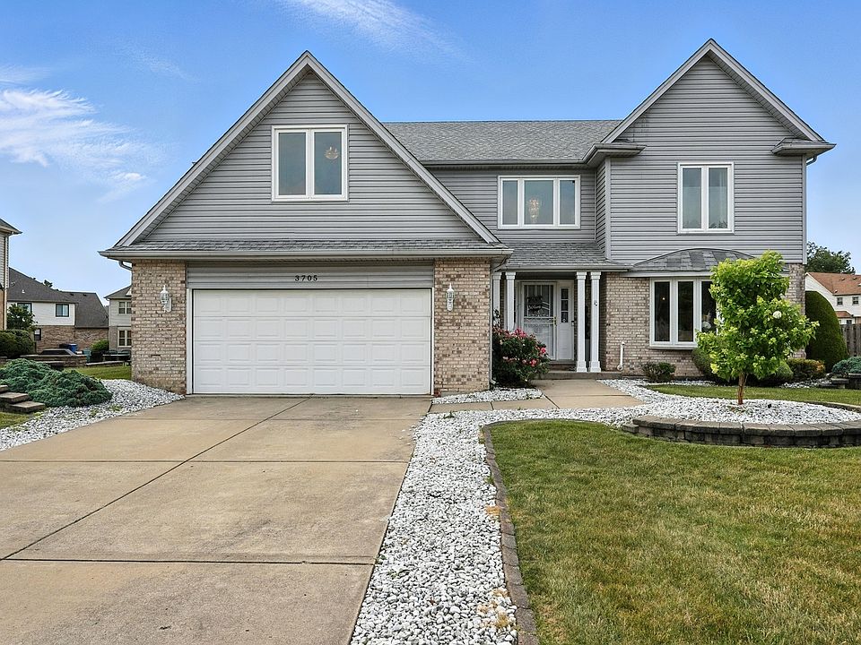 Discover your forever home in this breathtaking custom residence in Dynasty Lakes, where luxury and comfort meet. A grand two-story foyer with a dramatic dual staircase and rich hardwood floors welcomes you inside. The light-filled gourmet kitchen dazzles with brand-new cabinetry, granite countertops, a chic backsplash, a large island with breakfast bar, ample table space, and a walk-in pantry, opening seamlessly to a soaring two-story great room with expansive windows-perfect for gatherings. Unwind in the inviting media room, warmed by a wood-burning/gas fireplace, or retreat to the expansive main suite featuring tray ceilings, a spa-like bath with a whirlpool tub for two, a glass-block shower, a private water closet, and an oversized custom walk-in closet. Three additional large bedrooms, each with walk-in closets, share a well-appointed full bath. This home boasts modern upgrades, including a 5-year-old roof, new tankless hot water heaters, maintenance-free aluminum casement windows, updated vinyl siding, a new furnace and AC, 200-amp electric service, and custom closets throughout. The fully finished basement offers a spacious rec room, a dedicated exercise area, a 5th bedroom or office with generous closet space, a full bath, and ample storage-ideal for guests or flexible living needs. Step outside to a private, professionally landscaped backyard with a 4-year-old fence, an oversized deck, a concrete patio, and a newly added gazebo, perfect for outdoor entertaining or tranquil relaxation. With convenient main-level laundry and a prime Dynasty Lakes location near top schools, shopping, and highways, this impeccably upgraded home blends timeless elegance with modern comfort, ready for you to move in and make it your own.
