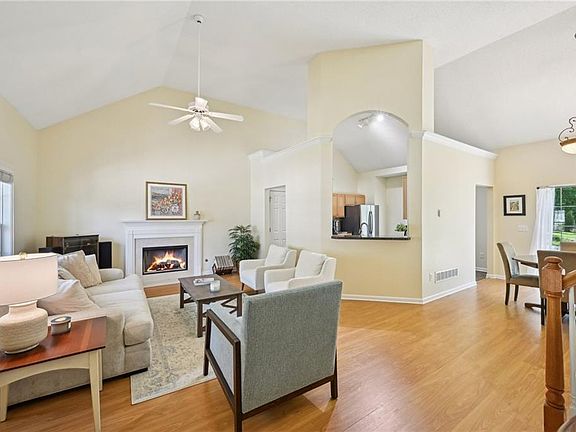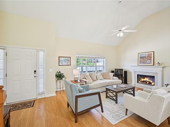Welcome to this beautifully refreshed home, nestled at the end of a quiet cul-de-sac and radiating Southern charm from the moment you arrive. Boasting a welcoming stone façade and an expansive front porch—perfect for rocking chairs and sweet tea—this home offers timeless curb appeal and inviting warmth. Inside, you’ll find a harmonious blend of classic style and modern comfort. Freshly painted throughout and featuring brand-new flooring on both levels, every corner of this home has been tastefully updated for effortless living. Enjoy peace of mind with recent upgrades, including sleek new bathroom vanities and toilets, updated porch stairs, and a new garage door opener. Step into the soaring, light-filled living room where LVP flooring, a cozy fireplace, and large windows create the perfect atmosphere for relaxing evenings or lively gatherings. The open-concept design flows seamlessly into the kitchen, equipped with new appliances, ample cabinetry, and a convenient pass-through to the living area—ideal for entertaining. Just off the kitchen, the formal dining room offers easy access to the backyard, making indoor-outdoor living a breeze. A few steps down leads to a spacious secondary living area—perfect as a family room, media space, or playroom—along with a laundry room and a guest powder bath for added convenience. Upstairs, escape to your tranquil primary suite featuring a tray ceiling and en-suite bathroom with dual vanities, a soaking tub, and a separate shower. Two additional well-sized bedrooms and a full hall bath complete the upper level, offering comfort and space for everyone. Step outside to a private backyard oasis where a patio slab is ready for your grill and outdoor furniture. The generous lawn backs to peaceful woods, providing a sense of seclusion and a perfect setting for outdoor entertaining or quiet mornings with coffee. Ideally located with quick access to downtown Atlanta, Midtown, Truist Park, as well as shopping, dining, and entertainment, this home offers the best of both tranquility and convenience along with a community pool and walking trails. Don’t miss this opportunity to own a stylish, move-in-ready home in a sought-after location—schedule your tour today!