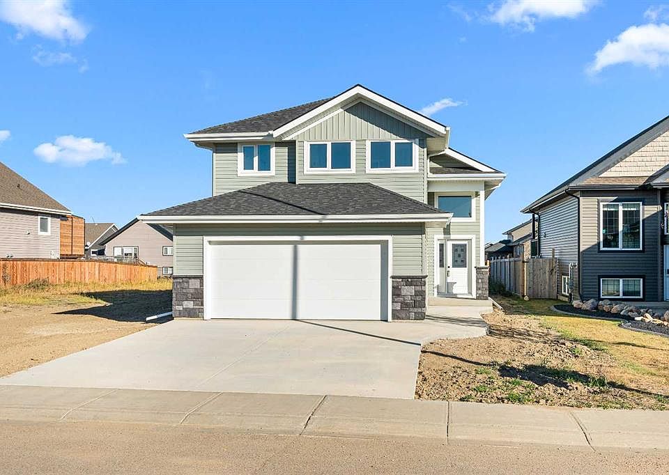 Location is usually top of mind when building a new home...This Saskatchewan side location is one of the best you will find- tucked inside a quiet crescent location with only localized traffic- you will love this non-busy street when backing out of your driveway!! Even more, you will love the green space that runs adjacent to your backyard and provides distance between you and neighboring homes. With the orientation of this home you can see the morning sunrise from your dining room. The home is everything you need- 1310 square feet above grade with a 22' by 24' attached garage. The master bedroom is conveniently located above the garage giving some separation between the main floor and the sleeping area in the Primary bedroom. The main floor features a vaulted ceiling through the kitchen and dining area, large island and a generous kitchen. The family room is open to the dining area and faces the backyard for maximum privacy and appeal.