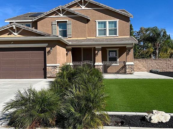Beautiful 5 bedroom home located within a very desirable neighborhood. This lovely home features custom "wood" ceramic tile floor throughout the 1st level, Plantation Shutters, recessed lighting, formal living room, family room open to kitchen, dining area, and lots of windows allowing for abundant natural light. The kitchen features open concept to family room, lots of counter space and cabinets for storage. 1st level bedroom and bathroom, laundry room, and sliding door leading to the fully covered patio. The 2nd level features a loft, four bedrooms with ceiling fans, lots of windows, and wall to wall carpet. Master bedroom with double entry doors, great views from all the windows, walk-in closets, master bath with dual sinks, bathtub, and separate shower. The 3 car tandem garage features storage cabinets, tankless water heater, and side entry door. This home comes with Solar Panels which are paid for. RV parking potential with concrete parking already in place, LARGE back yard great for hosting gatherings. The wonderful covered patio is huge and features 2 ceiling fans, rain gutters, and storage shed Don’t miss the opportunity to own this well-maintained gem. This is more than just a house—it's the place you’ll want to call home.