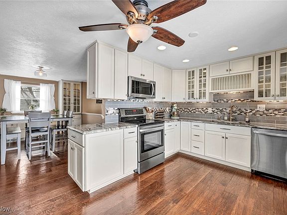 Spacious and updated Bi-level home located on over .84 of an acre property in North Ridgeville with no HOA, extra wide driveway, multi-level low-maintenance composite deck with two pergolas, large sheds, and fully fenced backyard with a firepit. With over 2,484 sq ft of living space, the home offers 4-5 bedrooms and 2 full baths, including a main floor primary suite with a sitting area and en-suite bath with a heated floor. An updated kitchen features granite countertops, tile backsplash, all stainless steel appliances, heated floor, and access to the deck. The kitchen flows into a dining area with built-in cabinetry, adding both character and functionality. A spacious family room provides a comfortable gathering space, with a den/bedroom off the family room. Additional highlights include an attached 2-car garage, a large pole barn-like shed (approx 16'x20'), and two additional sheds, offering ample space for hobbies, tools, or equipment. Updates completed in 2025 include: Replaced roof and hot water heater, installed carpet on entry stairs and lower level bedroom and hall, new stairs on deck, firepit in backyard, painted bedrooms, office, and garage, replaced toilet in lower level bathroom, light fixture in family room, installed shelving in laundry room, and more. A detailed list of updates is available upon request. INCLUDED are ALL kitchen appliances, washer/dryer, sheds, pergolas, TV mounts, window treatments, and all patio furniture. Conveniently located near I-80, I-480, I-71, I-90, OH-10, parks, shopping, restaurants, and other local attractions.