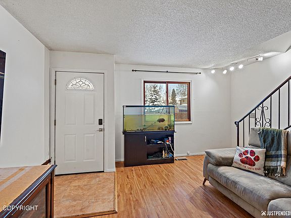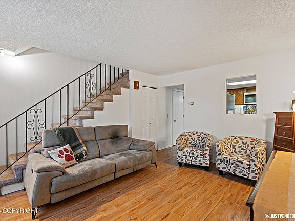 Move-in ready and full of updates, this well-cared-for zero lot line home offers comfort, space, and functionality in a convenient Anchorage location. Inside you'll find fresh interior paint, new carpet, and thoughtful bathroom updates, creating a clean and modern feel throughout.The main level features a bright living area with large windows, updated lighting, and durable flooring.The kitchen is warm and functional with stainless steel appliances, ample cabinet storage, and an open view into the dining room perfect for everyday living and entertaining. A sliding glass door leads to the backyard and covered outdoor area, giving you extended year-round use. Upstairs includes three nicely sized bedrooms, all with new carpet and great natural light. The full bath has fresh updates, including a modern surround and clean finishes. Additional perks include a convenient half bath on the main level, an oversized refrigerator, and plenty of storage spaces throughout the home. Outside, you'll love the large driveway with room for multiple vehicles, an established fenced yard, mature trees, and the privacy of zero lot line living without the maintenance of a duplex. This home is close to parks, schools, and shopping making it ideal for both homeowners and investors. Updated, functional, and ready for its next owner this one is truly a great find.