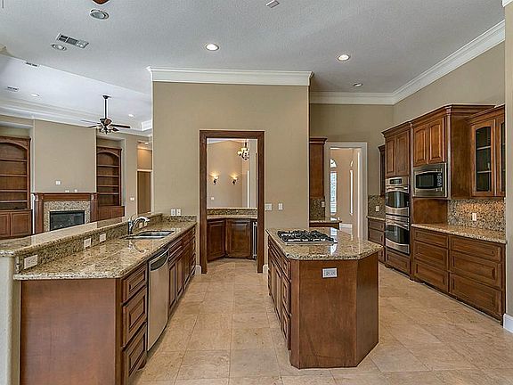 A Showplace You'll Be Proud To Call Yours! Enter through the Double Door Entry with Wrought Iron Inserts to the Incredible View of Gorgeous Pool and Spa through the Butted Glass Windows. Travertine Floors throughout all Main Living Areas, Fabulous Open Floorplan with Tall Ceilings, Stunning Chandeliers, Crown Molding, Tall Baseboards, Huge Kitchen featuring Granite, Double Ovens, Stainless, Serving Center Perfect for Entertaining, Master Spa Retreat with Private Door to Pool. **Watch Video**