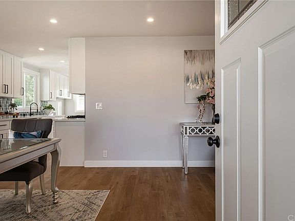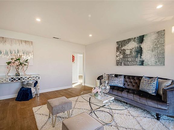 Stunning remodel! This open floor plan welcomes you with newer engineered hardwood flooring. Custom baseboards and recessed lighting. Kitchen features glossy white cabinets, stainless steel appliances and quartz countertops with a vintage glass backsplash. Tons of storage as the cabinets go all the way to the ceiling, large farmhouse sink and pantry. Sunny living room with a large picture frame window. Both bathrooms have been redone with spa features. The larger bathroom features a soaking tub with a rain head shower. Inside laundry, central air and heat and newer dual pane windows. Step the back door to a sparkling pool with lots of room around it to entertain. Two car garage and a long driveway. Located in the heart of Lakewood near the Country Club area.