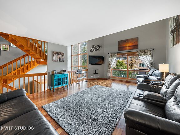 This townhome will take your breath away! It is a loft styled home with an open floor plan, vaulted ceilings, many oversized windows, Brazilian Cherry floors, a custom designed Kitchen, see through staircase and so much more. The first floor features a 2-story Foyer, a Bedroom/Study, a full Bath, a Study Nook, and a Laundry area, The second floor features hardwood floors throughout the spacious Living room, Dining Room, and Kitchen with an oversized island and snack bar, wine fridge, and stainless steel appliances. The third level features 2 large Bedrooms, a full Bath and a laundry hookup for everyone who would like to have their Laundry close to their Bedrooms. There is an attached 1 car garage, plus 2 exterior parking spaces. Award-winning schools. All of this on quiet treelined cul de sac. Close to train, shops. Come see this home. You will not be disappointed!