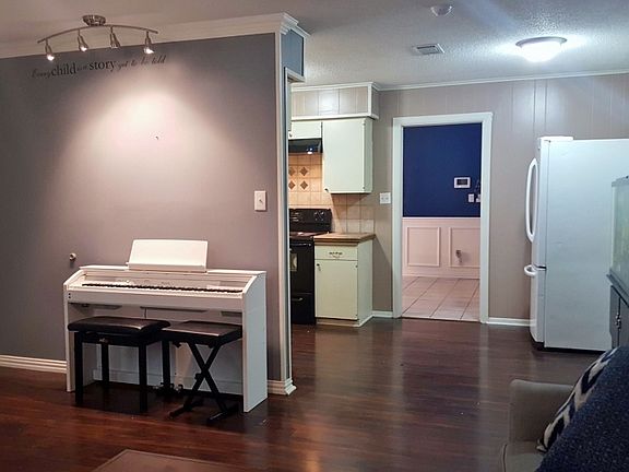 CUTE AS A BUG...4 BEDROOMS 2 BATHS! Located to easy access to Everything. Walk in to a Large Formal Dining Room to hold Family Gatherings. Off from this area is Laundry Room that has access to 4th Bedroom or this would make a perfect office, computer room or playroom. Galley Kitchen with Tiled Counters and Backsplash, New Hardware on Cabinets. Windows Everywhere with Faux Wood Blinds. Fresh Paint inside & out. Living Area is sized to fit just about any furniture. Both Baths have some updates. Bedrooms are good sized also. 2 Outbuildings for storage or lawn care items. Wood Privacy Fence with double gate under carport. Single Car Carport but additional parking pad. Gutters. Attic area has floored catwalk for convenience. This one is MOVE IN READY.