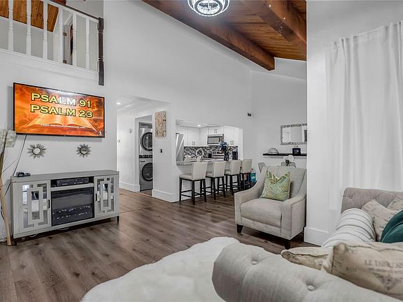 Beautifully updated villa in the heart of Davie! Officially a 2BR/1.5BA, this home features a loft conversion that provides the functionality of a third bedroom while still offering an office area. The fully remodeled kitchen is a standout with wave-design granite countertops, modern cabinetry, and stainless steel appliances. Two spacious bedrooms are conveniently located on the first floor. Vinyl plank flooring throughout adds a contemporary touch, while the screened patio offers serene views of a small lake. Perfect blend of comfort and style!