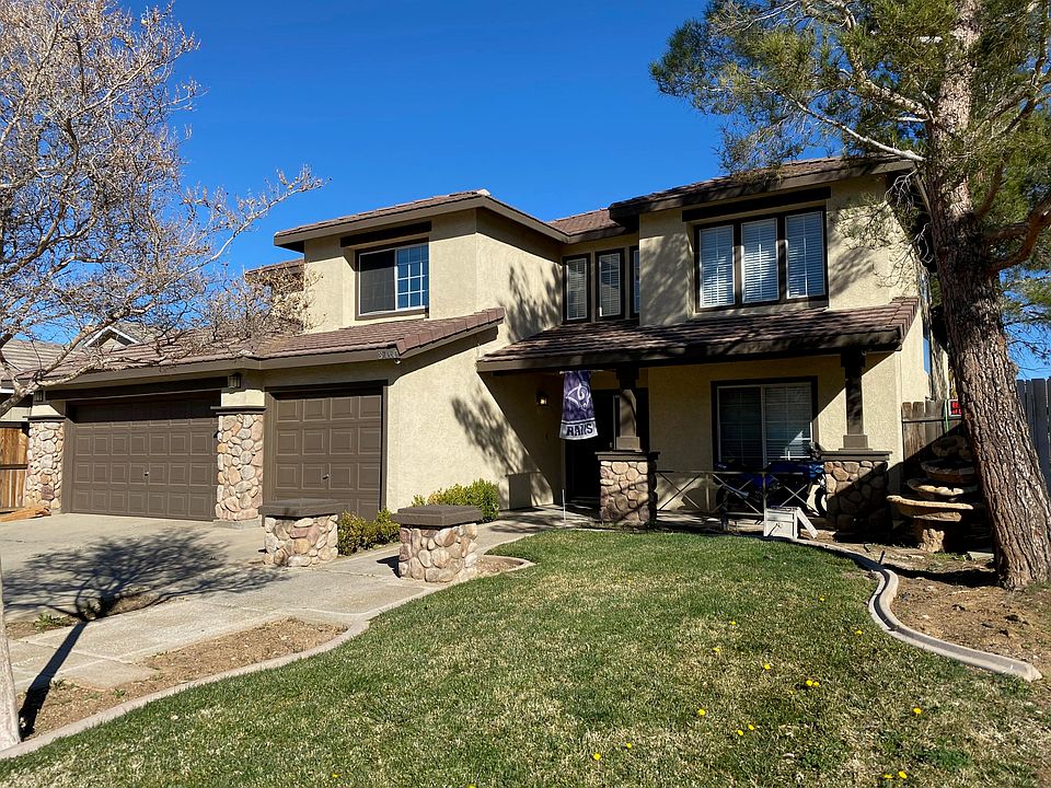 Taking Back up offers! Gorgeous 4 Bedroom + 3 Bath Former Model Home that Still Shows Like A Model! Updated throughout, Over $60k spent in upgrades! 4 Bedroom & 3 Full baths, Almost 1,900 sqft. Exterior recently painted, Formal Living Room, Family Room with Stone Fireplace and Custom Mantel, Master Bedroom with 2 Closets & Balcony, Downstairs Bedroom & Full Bath, Remodeled Kitchen, Modern Farmhouse with Extra Tall Cabinets, soft close and spice rack. French Doors to Patio, Pantry with frosted glass door. Beautiful white & grey granite counter tops, Breakfast Bar, New Engineered flooring throughout, Bookcases in formal living room. Ceiling fans in all bedrooms. New carpet on stairs and downstairs bedroom. LED lights throughout. New colored Stamped Concrete and fully landscaped backyard. 3 car garage with office/ gym area Concrete side yard with fence that can be used as dog area Very commuter friendly in a well established neighborhood. You might qualify to buy it with ZERO DOWN