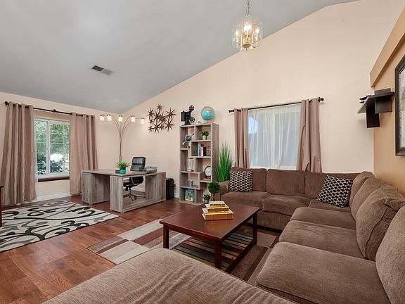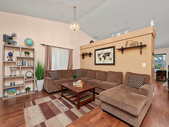 BEAUTIFULLY UPGRADED AND CARED FOR HOME PLUS INGROUND POOL, SPA AND PAID FOR SOLAR! Don't miss this lovely Contemporary Home. Great Curb Appeal and Stone Columns greet you. You enter to Formal Living and Dining Rooms with High Ceilings. The heart of the house is the Family Room with Cozy Stone Fireplace with a Wood Mantle that is adjacent to the Remodeled Kitchen. This great Kitchen features Rich Granite Countertops, Glass Tile Backsplash, Lots of Cabinets and Counter Space, a roomy Center Island and a Breakfast Nook. The Kitchen has a Large, Open Feel. The entire home features Rich Laminate Wood Flooring (except Wood Look Tile in Hall Bathroom) and Wide Baseboards. You'll love the Two Tone paint in Neutral Colors. There are Ceiling Fans, plus some Chair Railing, Crown Molding and Wood Window Sills. The Dual Pane Windows throughout are newer. The Master Bedroom Features a Walkin Closet and a Slider to the Back. The Back Yard is Made for Family Fun and to Entertain. There is a Covered Patio, Lots of Concrete for Easy Maintenance plus Raised Planters with decorative plants. The Family will really love the Inground Pool and Spa! There is a solar heater for the pool so you can enjoy swimming longer. And low power bills with PAID FOR SOLAR. Lots of Extras here including Water Heater that was just replaced. Don't Miss this UPGRADED POOL/SPA Home, ready for Your Family!