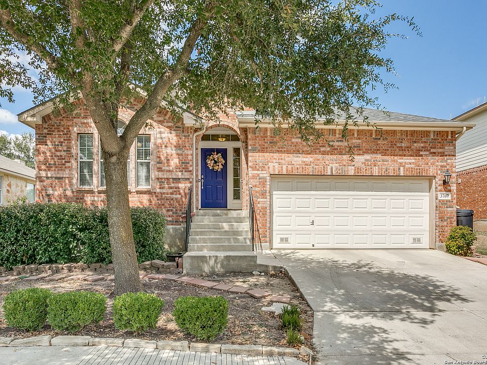 ****PRICED $18,720 BELOW BEXAR COUNTY APPRAISAL DISTRICT VALUE*** Move-in ready and tucked away on a quiet cul-de-sac, this charming single-story home is designed for comfort and convenience. The kitchen boasts Corian countertops, a stylish tile backsplash, gas cooking, 42" cabinets, and a built-in microwave, perfect for everyday meals or entertaining. Soaring 9-foot ceilings flow into the spacious family room, complete with wood flooring and a cozy gas fireplace. The primary suite features a spa-like bath with a garden tub, separate shower, dual vanities, and a walk-in closet. A built-in desk nook provides the perfect spot for working from home or doing homework. Outside, enjoy three sides of brick, a covered patio, extended decking, and beautifully landscaped surroundings. All just minutes from TPC Parkway, shopping, dining, Loop 1604, and Hwy 281!