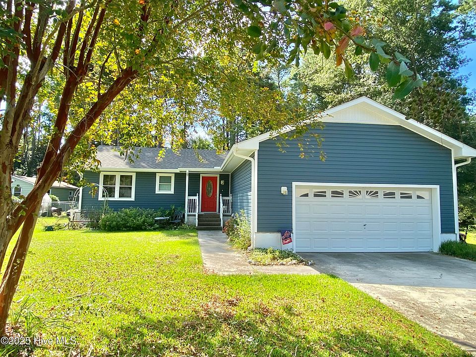 This Cute 3 Bedroom 2 full bath home maybe exactly what you are looking for. 1 story, no city taxes, conveniently located, 2 car garage, nice large storage building with over 1/2 acre lot with quite a few updates in the past few years. New shingles in 2021, Vinyl siding, vinyl windows and bathrooms updated in the past few years. Kitchen offers Granite countertops, Glass tile backsplash, Stainless Steel Appliances. Engineer Hard wood floors through-out the home. Electric Fireplace in living room. The Master Bathroom has a double vanity with vessel sinks and a unique walk-in tile shower and tub combo. The backyard has a large deck for relaxing or entertaining friends with fenced backyard and a large 18'x24' Storage/workshop! building. Sellers will be offering with an acceptable offer, the buyers interior paint choice in color! See Seller Paint Offer in MLS documents.