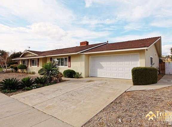 Welcome to this turnkey single story pool home with wonderful features including 3 bedrooms, 2 bathrooms, a 2-car garage w/a spacious laundry area and a large backyard yard w/a grassy yard, mountain view, and a sparkling pool! Tasteful upgrades include raised panel interior doors, crown molding, baseboards, plantation shutters, smooth ceilings, lighted ceiling fans, tile and laminate flooring, and dual-paned windows and a slider. The light and bright kitchen displays a 4-burner built-in gas range and range hood, a double oven, white cabinets, granite tile countertops, a breakfast bar and a window over the sink with a view to the back. Other features include a spacious living room with a rock-faced fireplace with a raised hearth, a master bedroom with an oversized walk-in closet and updated master bathroom, an updated hall bathroom with travertine flooring and a pedestal sink, and much more! Situated on a corner lot, convenient to parks, shopping, restaurants and schools!