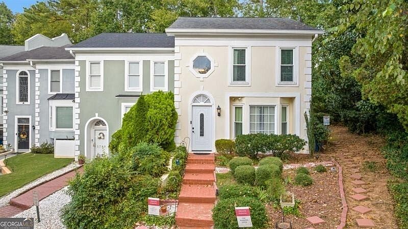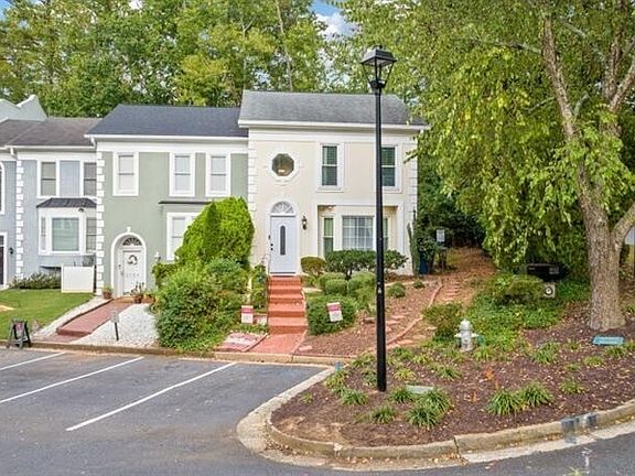 Charming End Unit in prime location! This low HOA & low-maintenance living townhouse has been renovated throughout. Open kitchen features granite, SS appliances and NEW range. Natural light fills the fireside living & dining room where French doors lead out to the relaxing private patio. Gated level backyard with walk-around access. Additional room on the main level beautiful mirrored glass barn doors offers an additional sitting room, office or bedroom. Powder room on main. Upper level primary with tray ceiling and updated bath. Secondary bedroom with en-suite bath. New windows, flooring, vanities, lighting and landscaping. Storage shed off the back patio.
