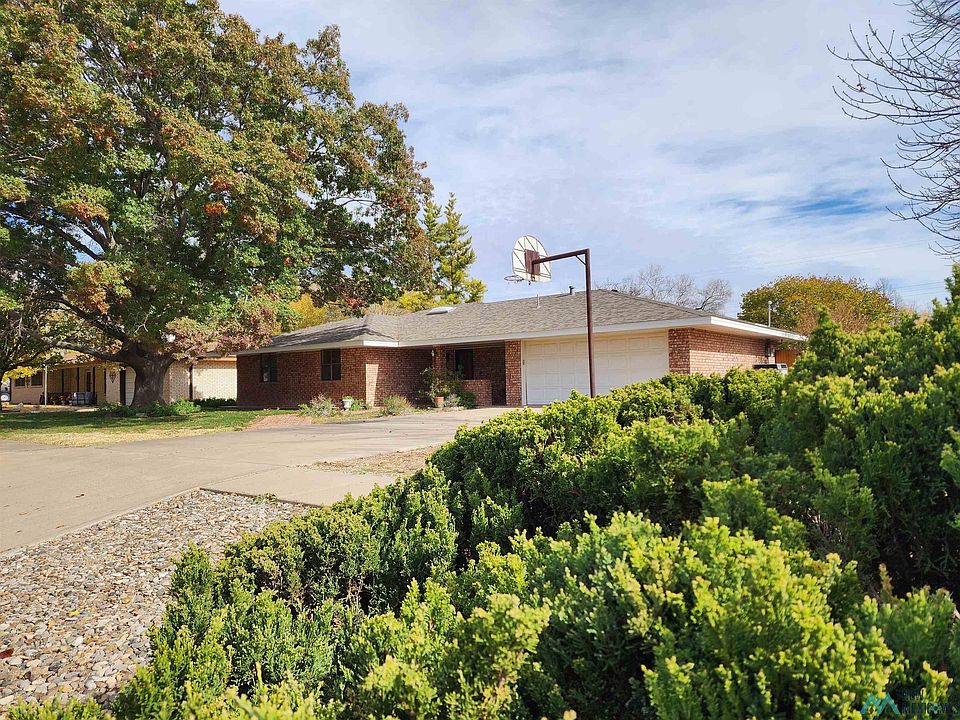 Don't miss this great 3 bedroom 2 bath home with a 2 car attached garage. Detached 4 car all brick garage/shop with a bathroom. Double car garage door access from the alley. Country kitchen with lots of cabinet and counter space. Master bathroom updated within the last 5 years, fireplace, large dining room area. Covered patio and covered porch, sprinkler systems front and back lots of shade from a big oak tree.