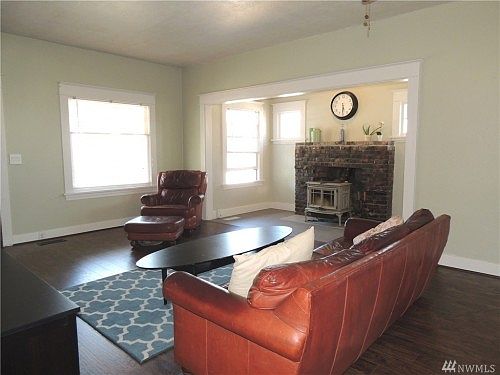 Beautiful, historic home with original, gorgeous woodwork throughout. Classic front porch. New interior and exterior paint, mostly new flooring, remodeled upstairs bedroom/bonus room with new drywall, paint and upgraded carpet. New 200 amp electrical panel upgrade, new plumbing, newer gas water heater. 2 year new gas forced air furnace and ducting. Newer, gorgeous wood stove and piping. Newly painted kitchen cabinets, built in pantry and private deck off eat-in kitchen. Gorgeous mountain view.