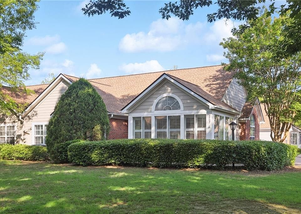 Welcome to Kennesaw's sought after The Vineyards! As you enter this bright and open home the vaulted family room awaits you with its gas log, fireplace. The dining area leads you to the well equipped kitchen with stained cabinets, new flooring, granite countertops, travertine tile backsplash, stainless appliances, over cabinet and under cabinet lighting and pantry. The owners suite is so spacious and bright with its palladium window and the double sinks and large vanity in the bath which also includes a shower, linen closet and oversized walk in closet. The two secondary bedrooms have ample space and share an enormous bath with tub/shower combo. Enjoy your morning coffee or reading in the light filled sunroom that includes an exterior door to the front patio area. The laundry room is off the kitchen with built in cabinets for extra storage. The two car garage has so much extra space and also includes the pull down attic access. New flooring in kitchen, new paint and plantation shutters throughout are such a bonus. Enjoy the beautiful amenities that include a clubhouse, work out room, pool and stunning pond views with two water features.