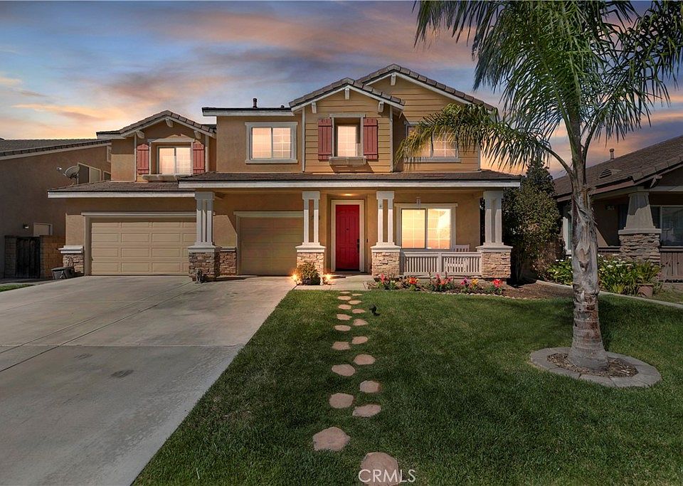 SELLER MOTIVATED! Priced UNDER model match comps for a quick sale. Hurry before it's gone! This is an Entertainer's Dream Home come to life! This lovely home exudes pride of ownership and can easily accommodate large families and gatherings. Main floor has a large Living / Dining Room with beautiful wood floors that lead to the kitchen & family room. Kitchen has granite counters, a LARGE island with breakfast bar seating, large eat-in kitchen area & walk-in pantry. SS appliances including a double oven & Refrigerator. Beyond the light and bright kitchen and family room that features a gas & wood fireplace is a main floor office / optional 5th bedroom great for working at home. Main floor laundry room with new tile flooring and appliances that convey to buyer! Elegant wrought-iron balusters on staircase leading upstairs. Upstairs features 4 bedrooms, 2 full baths, lots of linen cabinets and a humongous loft with vaulted ceiling. Primary bedroom features a French door entry, gas fireplace, soaring vaulted ceiling & generously-sized walk-in closet that has upgraded shelving. Two other bedrooms also have vaulted ceilings and one room has a large walk-in closet. All bedrooms have ceiling fans and the home has leased solar panels for energy savings. Large back yard GREAT for entertaining with mature orange trees, alumawood patio cover, play set for the kids and gas fire pit. Home is located in Parkside at Crown Valley Village with NO HOA. 3 car garage with epoxy flooring and driveway can accommodate RV parking. Crown Valley Park is just a couple blocks away and offers tennis / pickle ball courts, basketball courts, baseball diamond, soccer fields and a tot lot with on-site restrooms. Located in the award-winning Temecula School District! Don't miss the opportunity to make this remarkable property YOUR dream home!