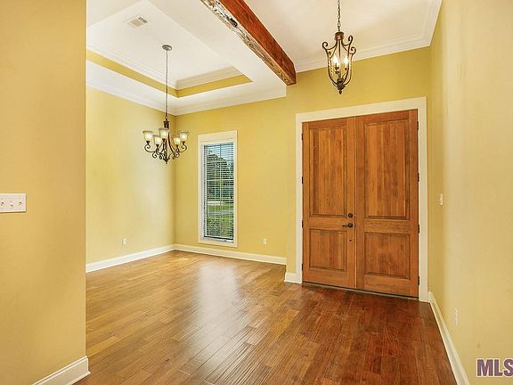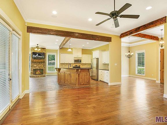 Amazing one owner custom home on 1.23 acres in Prairieville which includes private access In-Laws Suite. Rural living with no HOA restrictions. Conveniently located between I-10 and Airline Hwy off of Hwy 73 in Prairieville. Custom features include high ceilings with crown molding, old pine beams, hardwood and brick floors, and open feel that defines southern living. The spacious kitchen features an island/breakfast bar, gas range,stainless refrigerator, generous counter space, wood cabinets and a huge pantry. Adjoining keeping area has its' own bricked fireplace. In the living room you'll find the second bricked fireplace with a rustic pine mantel and French doors that open to a covered patio with views of your beautiful backyard. The Master suite includes a sizable bedroom with a door to your patio and a bathroom with double vanities, custom built large separate shower, soaking tub and his/hers walk in closet - one of the closets has a "secret" locked space currently used as a gun safe/hunting closet. The Bonus room / In-law suite is 848 sq ft and consists of 1 bedroom, 1 bathroom, living room, full kitchen and laundry area. The main house and the MIL suite both have tankless water heaters, separate AC units and separate attic space. The home is wired for security and a surveillance system. Between the 2 Living areas is a large two car garage for the main house and a one car garage for the in-laws suite. Additional features include: Portioned off fenced back, mud bench at back door, large utility room, surround sound in house, patio and MIL Suite, epoxy covered flooring on patio and in garage, covered parking for Boat/RV, pecan trees. Dutchtown school district and flood zone X (no flooding in 2016).