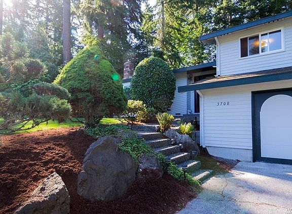 Tri-level home located on over a quarter acre, mature, landscaped lot. Light and bright formal living room with vaulted ceiling and views to front and back yards. Master suite with skylight and elegantly remodeled bath - Tile rain and steam shower with vessel sink, granite counters and custom cabinet with soft close drawers. Family room downstairs with wood stove. Oversized utility room with ample storage. Cedar siding, new paint throughout, vinyl windows, furnace and tankless hot water heater.