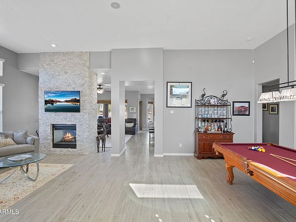 **VOTED BEST HOME on WeServ CHANDLER HOME TOUR** Beautifully remodeled home in Solera 55+ at Lone Tree Golf Club. NS facing, 12' ceilings, light and bright. Amazing interior and backyard transformation! Wide open views of the green on #4 & T-box on #5. TWO new HVAC units 2025. San Tan Mountain view. Remodel Highlights 2022-23: Stunning 2-sided, stacked stone fireplace makeover, full kitchen w/ 42'' cabinets, new lighting, quartz counters, SS appliances, induction cook-top and cookware conveys. 2023 wood-look tile and carpet bedrooms. All bathrooms remodeled. Fabulous backyard w/ 'Spool', (New 2023) heated, lights + waterfall feature, travertine pavers, artificial turf and pergola w/ fire-pit. Interior & exterior paint, even the garage! FULL LIST of Updates in Documents tab above. Active Resort Style Living in Chandler. Enjoy 18-hole Championship Golf, w/ Bar & Grill, Clubhouse, Heated Pools, Fitness Center, Pickleball, Tennis, Social Activities and much, much more. ~Welcome Home~
