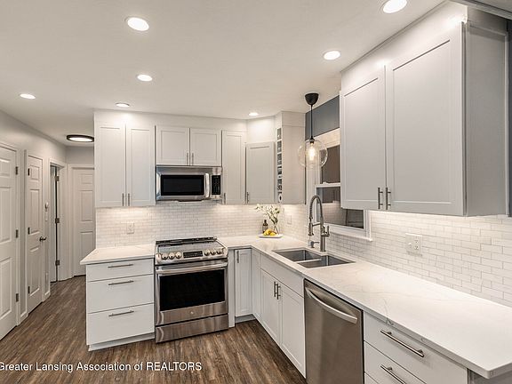 WELCOME TO 3708 GLASGOW DRIVE - A STUNNING & CHARMING 4-BEDROOM, 2-BATH CAPE COD NESTLED IN THE HEART OF LANSING, MI. WONDERFUL CURB APPEAL UPON APPROACH. AS YOU ENTER THE HOME YOU STEP INTO AN ELEGANT LIVING ROOM FILLED WITH NATURAL LIGHT & CONTEMPORARY FINISHES. THE BEAUTIFULLY UPDATED KITCHEN FEATURES WHITE QUARTZ COUNTERTOPS, CRISP WHITE CABINETRY, PANTRY SPACE, STAINLESS STEEL APPLIANCES, AND A COZY DINING NOOK. JUST OFF THE KITCHEN, A WARM FAMILY ROOM OFFERS THE PERFECT SPACE TO RELAX. THE MAIN FLOOR INCLUDES A BEDROOM CURRENTLY USED AS A LAUNDRY ROOM (EASILY CONVERTIBLE), A PRIVATE OFFICE, AND A DELIGHTFUL 3-SEASON ROOM OVERLOOKING A SPACIOUS, FULLY FENCED BACKYARD, IDEAL FOR ENTERTAINING, PETS, AND FAMILY FUN. UPSTAIRS, YOU WILL FIND A LUXURIOUS 22X16 PRIMARY SUITE LARGE ENOUGH FOR A KING BED AND A SITTING AREA TO ESCAPE OR WIND DOWN AT NIGHT, COMPLETE WITH GENEROUS CLOSET SPACE. THE UPPER LEVEL INCLUDES TWO ADDITIONAL BEDROOMS WITH THOUGHTFUL TOUCHES, SUCH AS A BUILT-IN READING NOOK, AND THERE IS A SECOND FULL BATH. ADDITIONAL HOME FEATURES INCLUDE: ALARGE PARTIALLY FINISHED BASEMENT THAT OFFERS ENDLESS POSSIBILITIES FOR ADDITIONAL LIVING OR RECREATION SPACE. A 2-CAR ATTACHED GARAGE AND ALL APPLIANCES, INCLUDING WASHER AND DRYER , ARE INCLUDED FOR YOUR CONVENIENCE. JUST 1-2 MINUTES FROM WEST LANSING'S BEST SHOPPING, DINING, AND GROCERY OPTIONS, AND A SHORT WALK TO MOORES RIVER DRIVE FOR SCENIC RIVERSIDE STROLLS. THIS HOME COMBINES COMFORT, STYLE, AND LOCATION — MOVE RIGHT IN AND BEGIN YOUR NEXT CHAPTER.