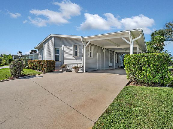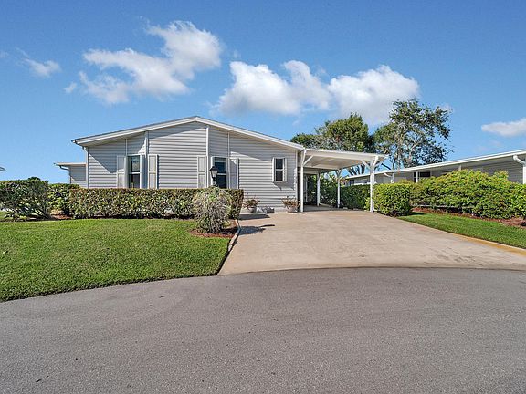Enjoy stunning lakefront views from this beautiful Double-wide 2001 modular home in the Preserve at Savanna Club, a lively 55+ golf community. This 2-bed, 2-bath home features an open floor plan, Florida room for hobbies or office, new AC, and is set on a quiet cul-de-sac with a spacious carport and storage. Extras include hurricane shutters. Resort amenities: 18-hole golf course, fitness center, clubhouses, and year-round activities. Close to beaches, shopping, and dining. Lot rent is $765 a month.
