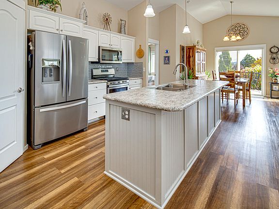 Located in SW Redmond within the desirable Summer Creek community, a 55+ neighborhood filled w/cottage style homes. This great room floorplan ftrs vaulted ceilings, large picturesque windows for an abundance of natural light, & a cozy corner gas burning fireplace w/hearth & mantle. Kitchen ftrs a central island w/double sided sink, an abundance of cabinetry & prep space, under cabinet lighting, a large corner pantry, built-in desk space, plus a large dining area w/sliding doors to lead outside to deck. Large vaulted primary suite w/walk-in closet, double vanities, step-in shower, & enclosed water closet. Two additional well appointed guest suites share a full bath, one serving as a home office currently. Large laundry room w/plenty of space for additional storage options. Gorgeous landscaping in the front/backyard w/a covered front patio & open back deck as well. Located right across from open community space & a short distance away from the Clubhouse.