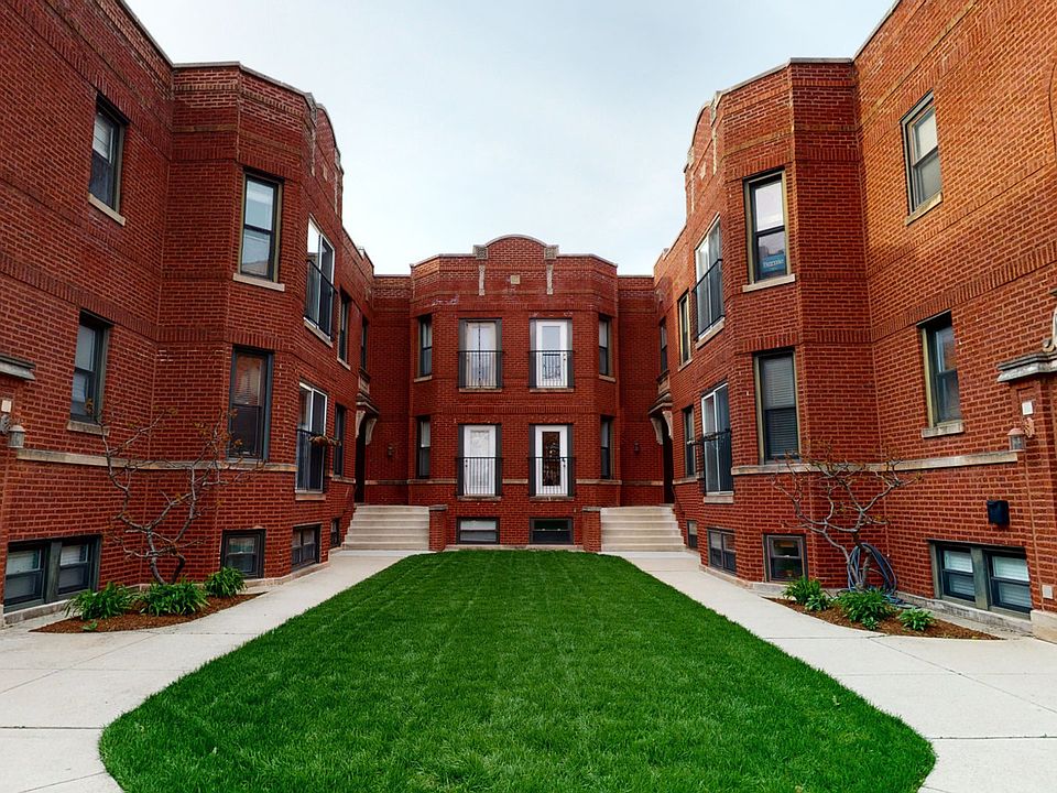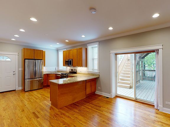 Stunning! Courtyard duplex condo. In the heart of one of Chicago's premier neighborhoods, Logan Square. This freshly painted three bedrooms two baths duplex down was the model unit and opens up to a spacious living area with hardwood floors and beautiful crown moldings above, and a formal dining space overlooking a landscaped courtyard that lets in tons of natural light. Just off the kitchen, there is a large Master Bedroom with a master bath that has plenty of closet space. The open concept kitchen features cherry cabinets, granite countertops w/ breakfast bar, new marble backsplash, and new stainless steel appliances. This condo is one of the few units that have a private gated parking space leading to the new rear deck, and just one of three private areas to the unit that includes a heated enclosed back porch and additional storage on the lower level. There is a large family room downstairs, bedrooms with new carpet, large closets and in-unit laundry, LG washer and dryer, and never-ending hot with the water Rinnai tankless water heater, New Furnace and flood control system. Steps to Blue Line L, Metra stop, Cafes, Bars, restaurants, and shopping. Attention Investors This Unit Can Also Be Rented!
