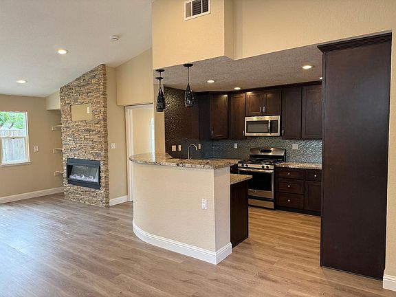 Tastefully updated gem in the gated Applebrook community of Brookside. Step into an open floorplan with vaulted ceilings and a floor to ceiling stone fireplace. Updated kitchen and bathrooms with striking tile and stone work. Vaulted ceilings continue into the primary bedroom with walk in closet and relaxing jetted bathtub. Generously sized guest bedroom. Versatile den that makes for an ideal home office, hobby space or playroom. Brand new vinyl plank flooring and fresh paint throughout it all. Other features include an inside laundry area, efficient whole house fan, low maintenance yard (front yard taken care of by HOA) and access to the community pool and rec center. Located within the desirable Lincoln School District this is the perfect home for first time buyers, downsizers or anyone looking for some move in ready style.