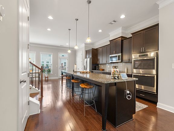 The main level boasts an open floor plan with a large kitchen, dining, living area, and deck. The double oven and large kitchen island make the space great for entertaining. The downstairs has a large bedroom which can double as a second living room or office. The upstairs includes a spacious primary bedroom, primary bathroom with oversized shower, two guestrooms, and an additional bathroom. All bedrooms have large walk-in closets.