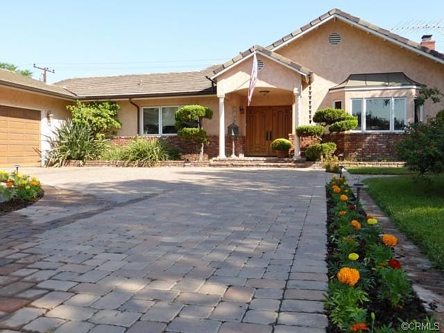 Newly remodeled in 2005. This home features an open and airy floor plan. Kitchen is cherry and Granite with ample cupboard and counter space. Large living room with built in bookcase. Family room with brick fireplace and vaulted ceilings, large dining area. Beautiful wood floors. Two master suites with patio access. Two other good size bedrooms. Central air and heat, dual pane windows, and a system pavers driveway! Covered patio and fruit trees. This home is ready for you to move in. Nothing else like it. Lot size is over 10,500.