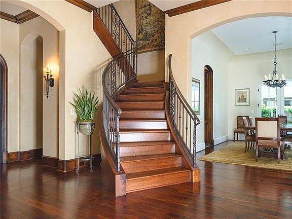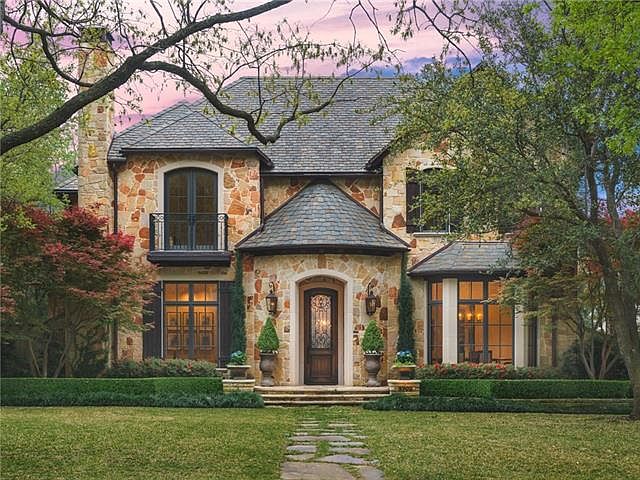 Evoking the warmth and sophisticated architecture and design, this 6,100 square foot custom home strikes the perfect balance of comfortable luxury living and impeccable style. Nestled beneath a canopy of mature trees in the middle of the fairway in University Park, the 5 bedroom, 6.5 bath estate boasts a rich stone exterior, saltwater sport pool, 336-bottle wine room and extraordinary indoor/outdoor spaces built to entertain.Inside a captivating scene unfolds with sweeping formal staircase (2nd staircase in back), gleaming walnut floors and a gracious, open floor plan. Gourmet chef's kitchen is adorned with gorgeous slab granite counters and center island, Asko dishwasher, two Fisher Paykel drawer dishwashers, Wolf 5' double oven range, SubZero refrigerator/freezer, large island with drawer microwave, prep sink and disposal. A charming dining nook and sitting area offer sundrenched views, accompanied by a large butler's pantry that makes serving a breeze. Conveniently located, it leads to a nearby formal dining room with French doors that open to a private patio with built-in water feature. The family room just off the kitchen with 7.1 surround sound offers three sets of French doors that open to a large covered patio with outdoor Wolf grill and stone fireplace - ideal for intimate gatherings or large social events. Host a tasting in the walk-in 336 bottle wine room (plus 24 big format) with separate wet bar, or take the party upstairs to the large game room/home theatre with 5.1 surround sound 60" TV, built-in custom cabinets, wet bar, refrigerator, pool table and balcony overlooking the manicured backyard. Retreat to the oversized master suite for a private oasis of calm, lavishly appointed bath with arched double door entry, and high-end stone and marble finishes in spa bath with his/hers closets, luxurious steam shower, porcelain spa tub, separate vanity and custom coffee bar with sink. A handsome study on the first floor is equally impressive with wood paneled walls and custom built-in desk and cabinets.A 3-car garage with lit work desk, built-ins, storage and outdoor basketball goal in the driveway allows you to keeping things organized and shoot hoops between projects. Additional upgrades include a large utility room with laundry chute, granite slab counters and backsplash, and a workout room wired and plumbed for upstairs laundry and framed for door to master (potential nursery if desired). Five custom-made outdoor gas lamps, Bonick landscape designed and constructed exterior, beautiful masonry rock walls, and grade beam foundation for privacy and quiet ensure first-class outdoor gatherings with family and friends. Everyone will love the sport pool made for swim jets, water basketball, volleyball and separate spa. Central vacuum with "sweep in" feature in kitchen and master bath, and built-in mosquito mister system are an added bonus. HVAC: Three 19 SEER condensers for maximum efficiency and economy; rigid ducting and four separate zones upstairs, Maximum heating and 30+ degree cooling with lower than average utility billings, Trane Clean Effects plus UV on all HVAC for pure interior air without allergens, virus or germs, 2-piece wine room cooling and conditioning system. ELECTRIC SYSTEM: Lutron home system, Natural gas generator runs refrigerators, TV, HVAC, hot water and some lights without public power, Netscape whole house and exterior sound, 2 cameras on exterior, Whole house alarm system. WATER SYSTEM/PLUMBING: Whole house conditioned and filtered water without salt, Whole house reverse osmosis pure water system on cold side with separate valves in bathrooms and wet bars, Separate water meters for house and yard, Four in-line water heaters for instant, unlimited hot water for all bathrooms, kitchen, utility room.