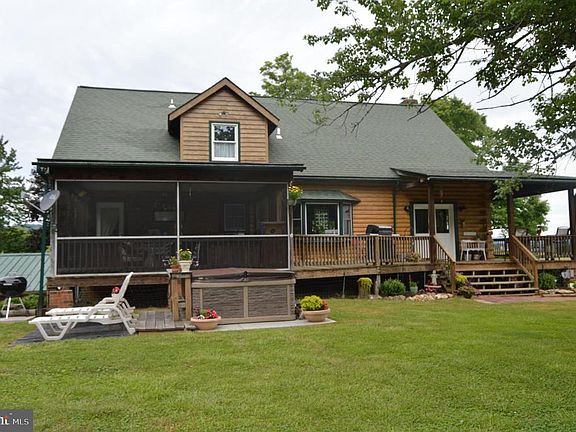 Million dollar views from your front porch* Mini 5 acre farmette*Log cabin with wrap around covered porch* This gorgeous home has a main level master suite with attached nursery/office/sitting room*Walk in closet*Built in bookcases and shelves*Private entrance to enclosed screened in deck* Master bath with glass enclosed shower and double vanities*Hardwood floors on main level and stairs* Updated kitchen with breakfast bar and wine cooler* Living room with wall to wall brick fireplace* Upper level has 2 spacious bedrooms with lots of closet and storage space* Full bath with tub/shower* Lower level has laundry area* Workshop area* Recreation room/studio/bedroom/storage/etc......Machine shop and shed have electricity* Horse/animal barn* Chicken house/coop*Enclosed backyard area has beautiful flower beds and brick walk-way to back porch* Hot tub/spa*Fully fence