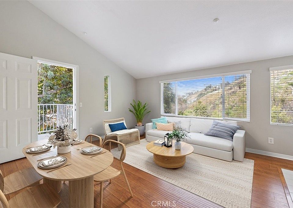 Welcome to beautiful Las Flores Canyon where the most spectacular private Townhome awaits. A secluded entry around the back of a 4-unit building with it's own private patio which looks out towards the oak trees, mountains and seasonal stream. As you walk through the door you will see stairs that lead you up to the main floor but on the first floor there is a bedroom suite with private bath and walk in closet. Upstairs you will enjoy a large living space and kitchen that looks out over the tops of the trees to the mountains along with a balcony to enjoy the ocean breeze. The large family room has a lovey fireplace for those chilly winter nights. Also upstairs you will find another bedroom and full bath. Enjoy the close proximity to everything Malibu has to offer. Just a 10 minute drive to Pepperdine University, the country mart and so much more. Living next to the mountains with million dollar views and the ocean doesn't get better than this.